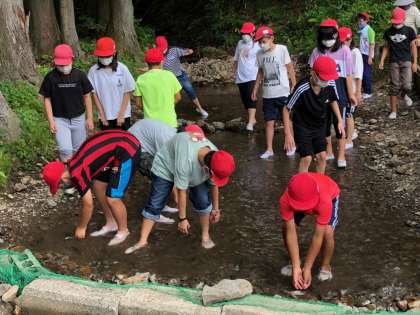 ニジマスを生きたまま掴んだことがない子が多いみたいですね。
