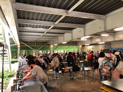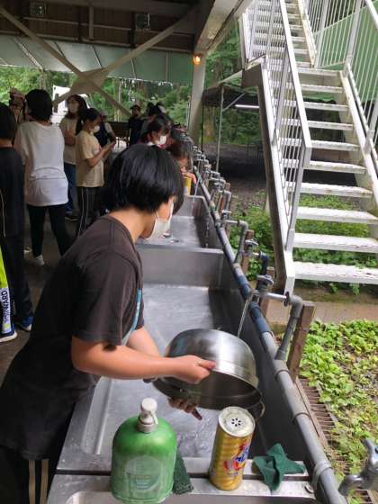 炭で黒くなった大きなお鍋も綺麗になるまで磨いて合格です。