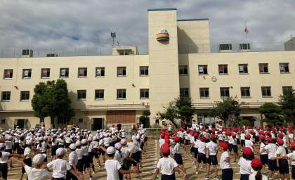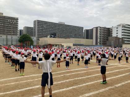 どの学年も元気よく行進をして、ラジオ体操もしっかりできています。