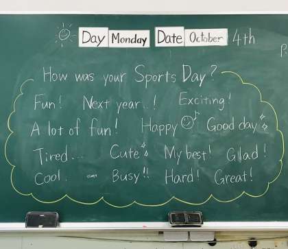 運動会を終え、外国語科の授業では“How was your Sports Day?(運動会はどうでしたか。)”と感想を伝える活動を行いました。これまでに学んできた単語で、ジェスチャーを使いながら答える児童が多く、これまでの学習をしっかり生かせていると感じました。下学年の演技や競技が“Cute!”と答える児童もいました。