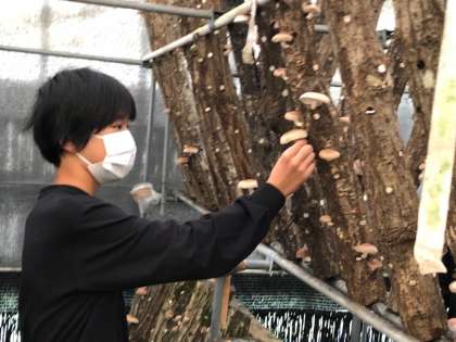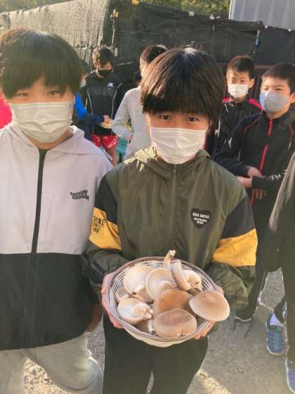 どのようにしいたけが育つのか、原木栽培について、など教えていただき、原木を運んでから、美味しそうな一つを選んで採りました。