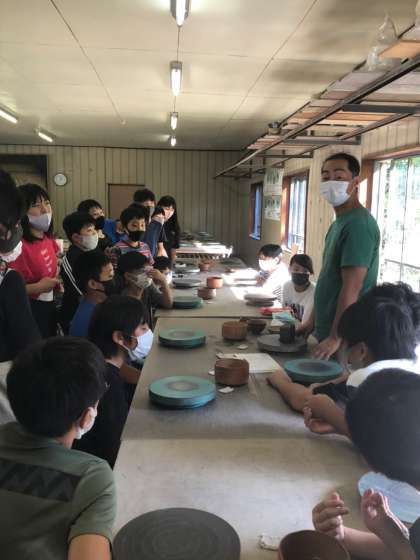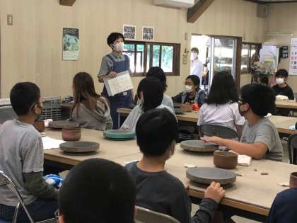 作り方を教えていただき、1人ずつろくろを使って思い出に残る作品づくりをします。