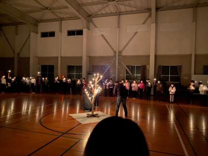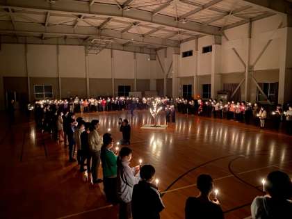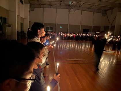 全員にキャンドルの火を灯し「今日の日はさようなら」を歌いました。