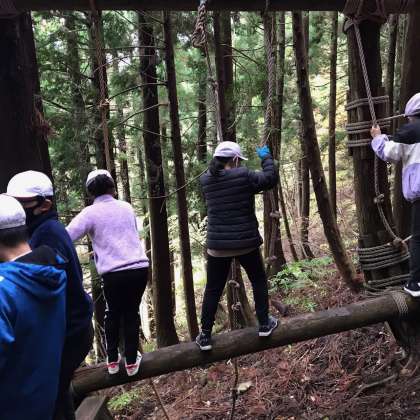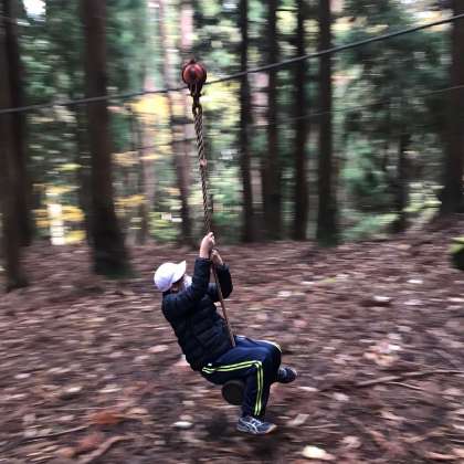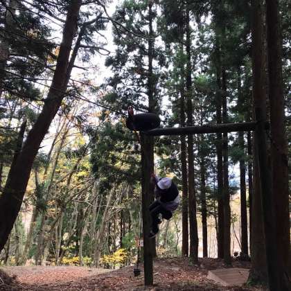 森で作られるアスレチックは、公園のとは違い、怖さを感じる面も見られました。