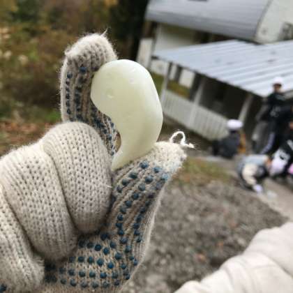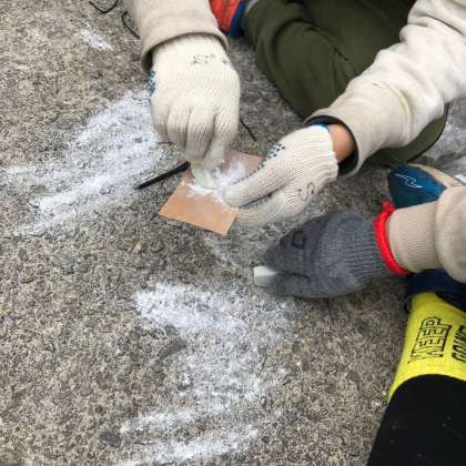 角を削って丸を作るのが難しいようですが、熱中して削っています。