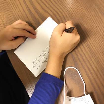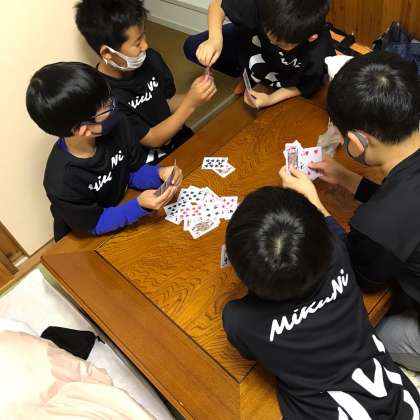 トランプをしたり、お家の人にはがきを書いたり、日記を書いたりしています。