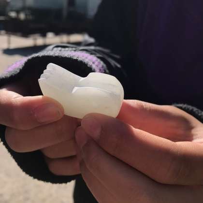 勾玉作りは、昨日の続きをしていて、石を削り、好きな形を作っています。