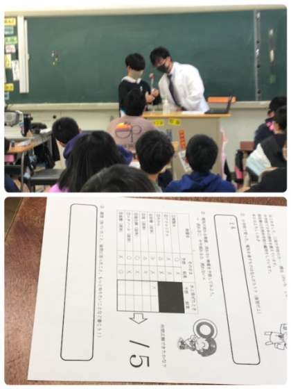 5時間目、三国中学校の先生が、6年生の各クラスで出前授業をしてくださいました。