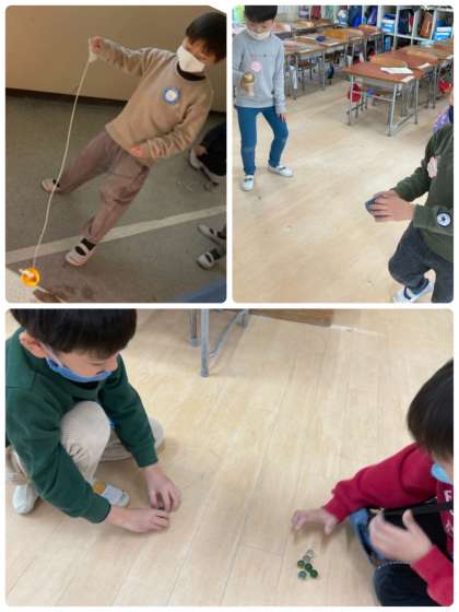 生活科で昔遊びの学習をしています。