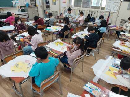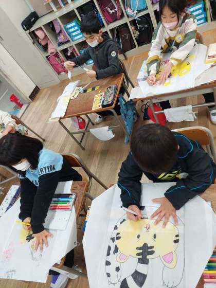 今は、凧に思い思いの絵を描いている段階で、「早く揚げたいなぁ」「ちゃんと揚がるかなぁ」とわくわくしながら作製しています。