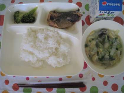 さばは骨付きだったので、低学年の子どもたちは食べるのに少し苦戦していました。