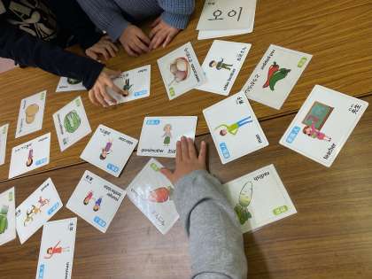 ハングルでのカルタ遊びは難しそうでしたが、何度も繰り返して取り組みました。