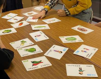 今まで練習してきた家族・野菜のカルタを使って、カルタ大会をしました。