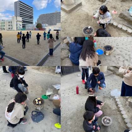 総合的な学習の時間に七輪でお餅を焼く体験をしました。