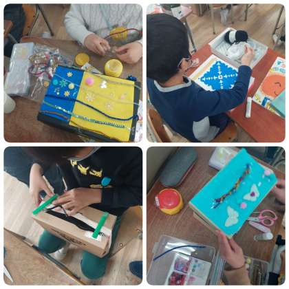 図画工作科で「かざってなにいれよう」に取り組んでいます。