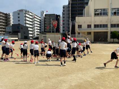 体育科の授業では、玉入れをしました。