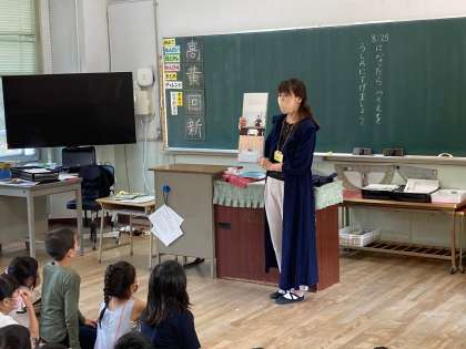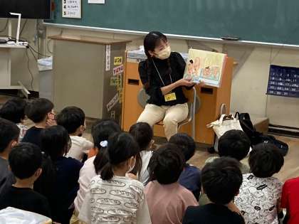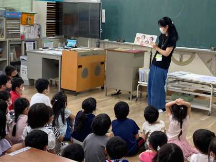 昨年度は新型コロナウイルス感染症対策のため、テレビ画面を通しての読み語りがほとんどでしたが、今年度は対面での読み語りができています。