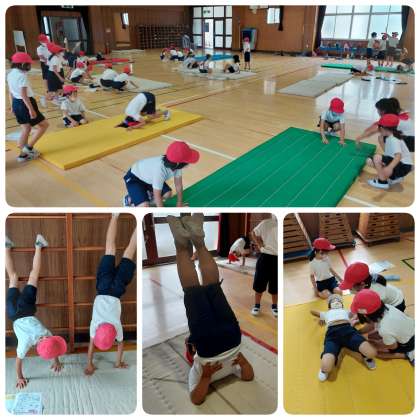 講堂では、マット遊びをしています。