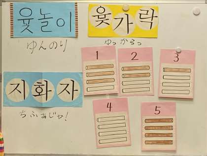 今日のポラム学級では、韓国・朝鮮の遊び「ユンノリ」をしました。
