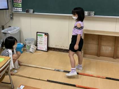 子どもたちは、すぐにリズムを覚えてステップに挑戦し、足を挟まれないように上手に踊っていました。
