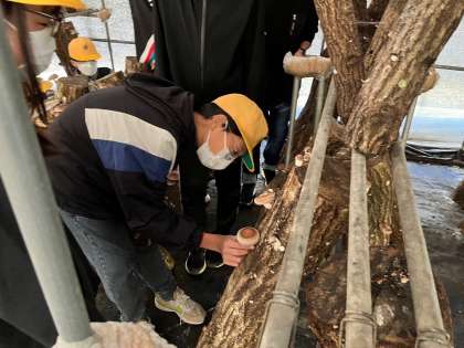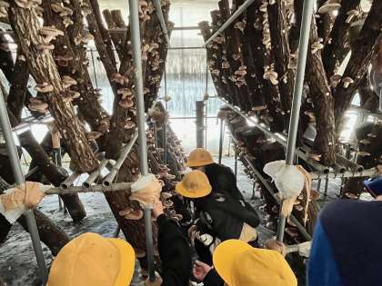 取ったしいたけはこれから焼いてもらい朝食で食べます。