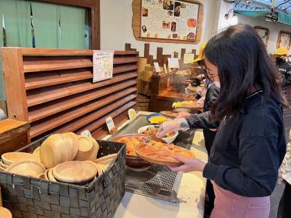 朝のひと仕事を終え、朝食バイキングの時間です!