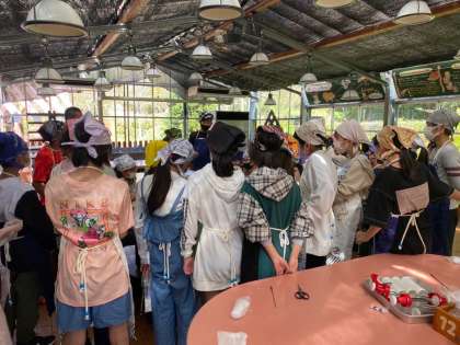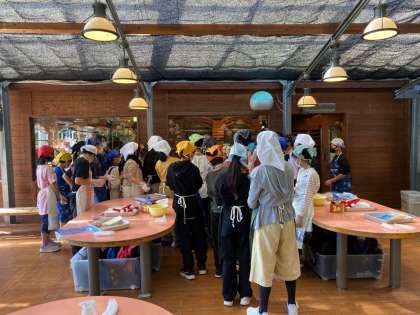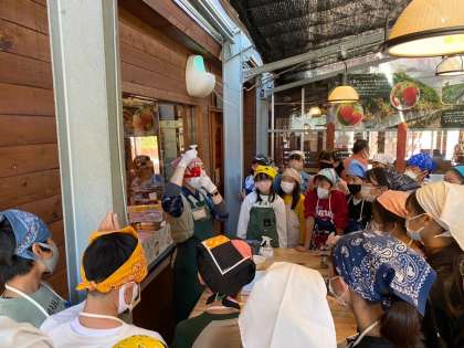 クラスに分かれて腸にお肉を詰めるやり方を説明していただいていいます。