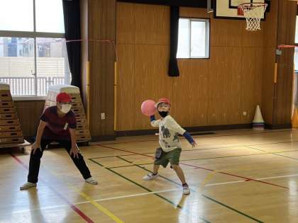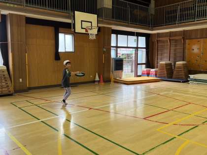 体育館のカーテンの裏や、跳び箱の上など、様々なところにあるのを見つけて大喜び! 隅々まで一生懸命探していました。