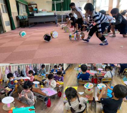 図画工作科で「かみざらコロコロ」の作品を作りました。