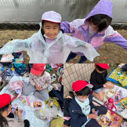途中で雨が降ってくるというハプニングもありましたが、おいしいお弁当をお友だちと楽しく食べていました。