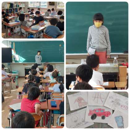 これまで、終わりの会で一分間スピーチをして身につけてきた「話す力」を発揮して、みんな大きな声で、しっかりと話す人を見て、上手にお話ができています。