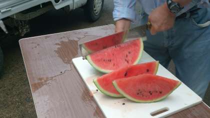 川遊びのあとのスイカはとっても甘く、最高においしかったようです!!