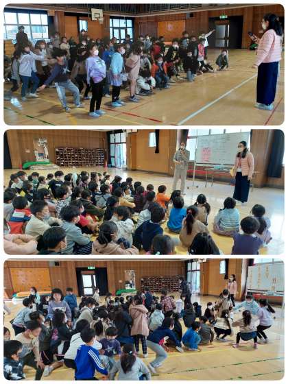 聞いた音を真似て声に出し、いろいろなゲームをして楽しんだ1時間でした。
