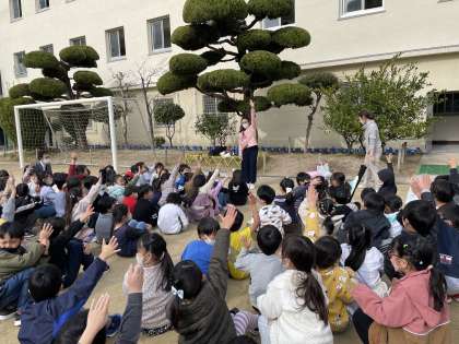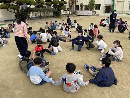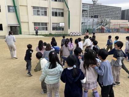 1年生全クラス一緒に授業を受け、英語をつかった様々なゲームで体を動かしながら楽しんで学習しました。