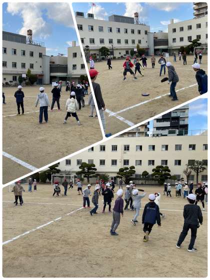 2学期は、ソフトフリスビーでドッジボールをする「ドッジビー」をしました。