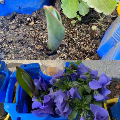 2学期に、生活科の学習で植えたチューリップの芽が出始めました。