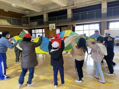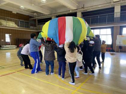 2月21日(火) なかよしタイム「パラバルーンを使って遊んだり表現したりしよう」