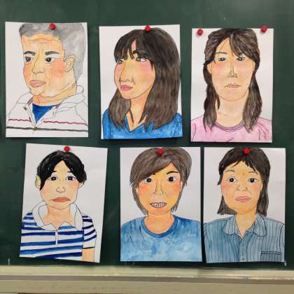 図画工作科の研修では、自画像を描きました。
