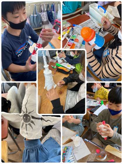 4年生は、図画工作科で粘土を使用してオリジナルの塔をつくっています。