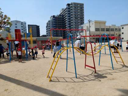 体育の時には体操服に着替えるので、着替える練習と遊具の使い方の説明とを行いました。
