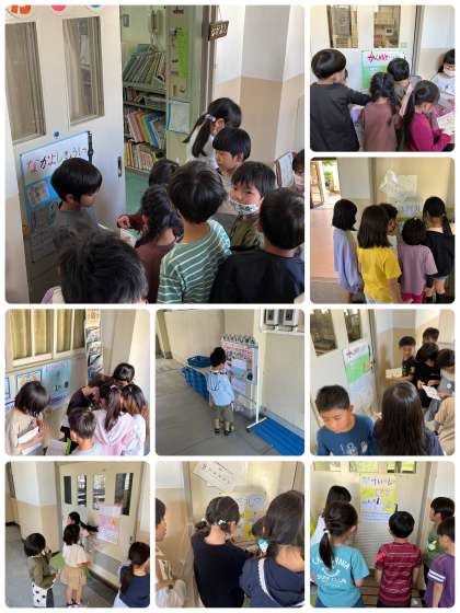 自分たちで作った掲示物をもとに、1年生に教室の説明をしたり、迷子にならないように誘導したりしてがんばりました。