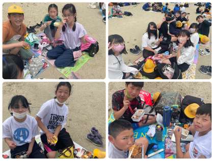 オリエンテーリングを行い、たくさん歩いた後のお弁当です。