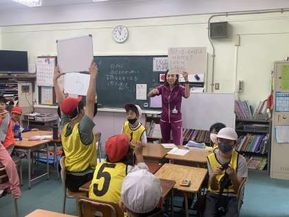全問正解を目指して一生懸命グループで話し合いながら、答えが何番なのか考えていました。