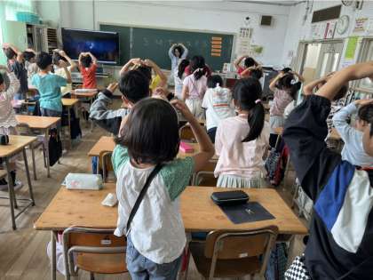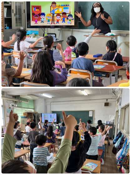 子どもたちは、1・2年生で学んだことを思い出しながら、歌ったり、ジェスチャーをつけたりして、楽しく取り組んでいました。