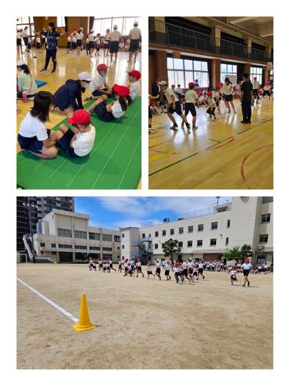体力テストの記録では、初めて計測をする1年生に、6年生が優しくやり方を教えてくれて、記録をとることができました。