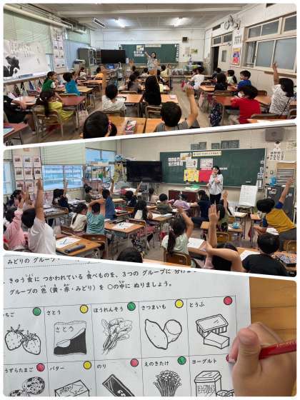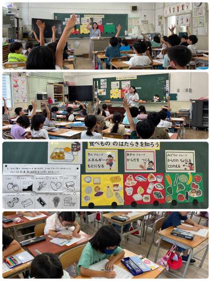 先週金曜日と本日の2日間で、栄養教諭の先生から食べ物のはたらきについて教えていただきました。