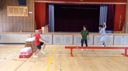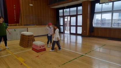 平均台や跳び箱、フラフープ等のたくさんのミッションをクリアしていきながら、ゴールをめざして走りました。
