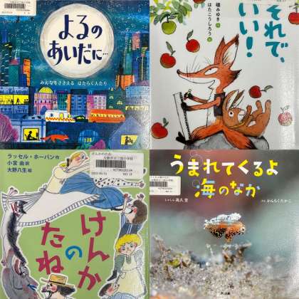 課題図書は「よるのあいだに」「それで、いい!」「けんかのたね」「うまれてくるよ海のなか」です。