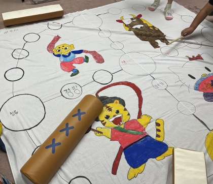 その後は、赤(パㇽガンセッ)チームと緑(ノッセッ)チームに分かれて、トゥホとユンノリをしました。