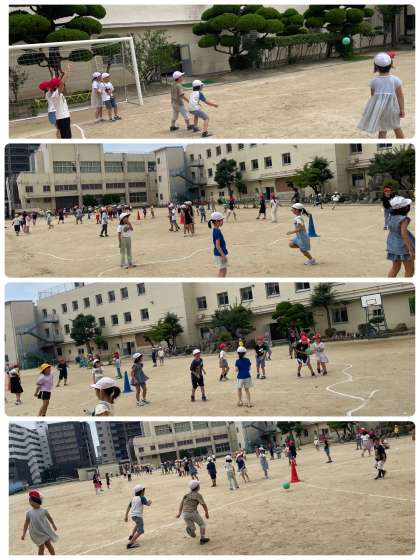三角コートやグネグネコートなど、いつもと違うコートや違う学年で楽しく活動することができました。